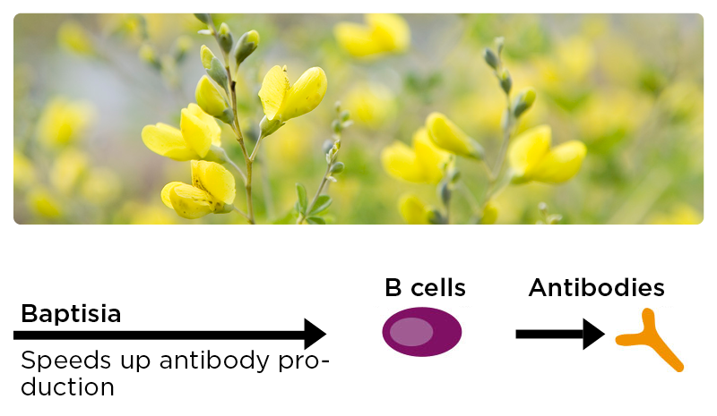 When you have a flu-like infection, baptisia (wild indigo) activates B cells, thereby speeding up the production of antibodies.